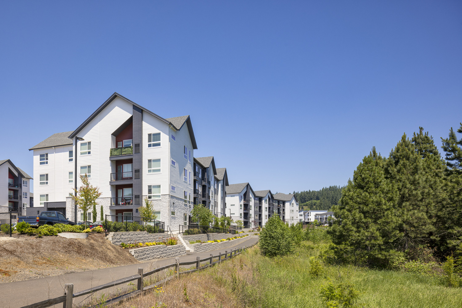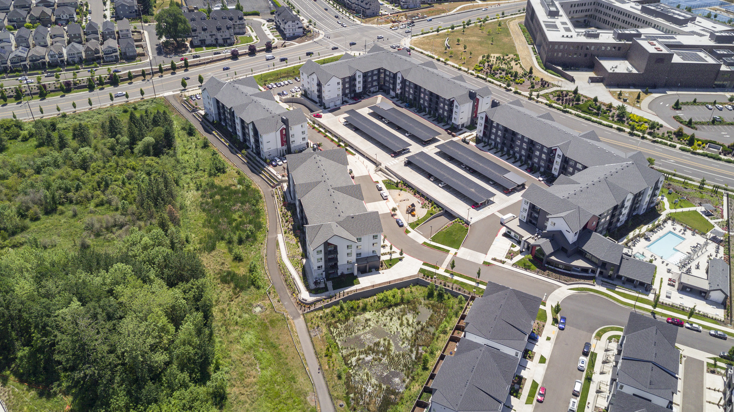 Arazo is a four building apartment community located on the outskirts of Beaverton near Portland, Oregon. The site is the last greenfield opportunity in the area and the final piece of a larger development. A large clubhouse space, pool and amenity deck provide great community interaction. There are also plenty of opportunities to enjoy the outdoors with the numerous pedestrian pathways, which connect to the greater recreation trail system.