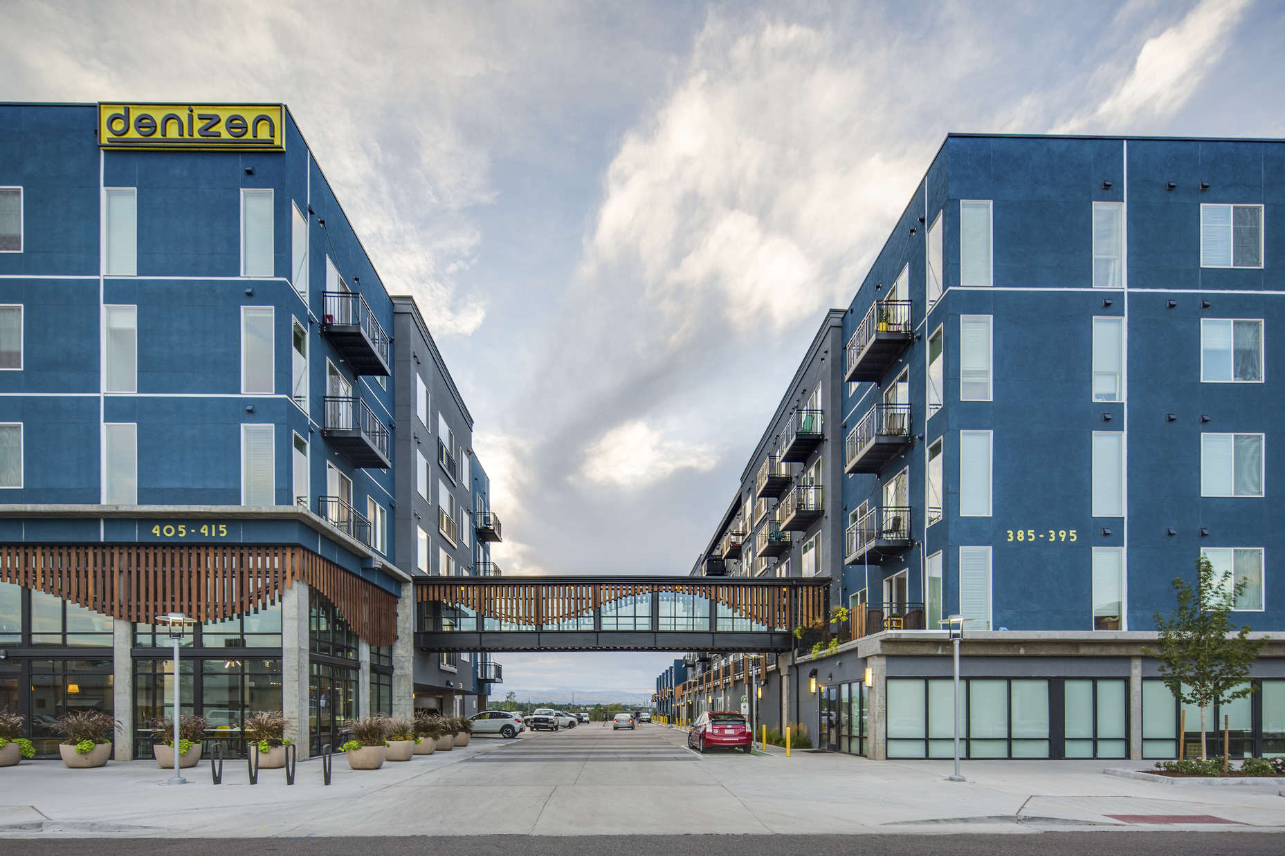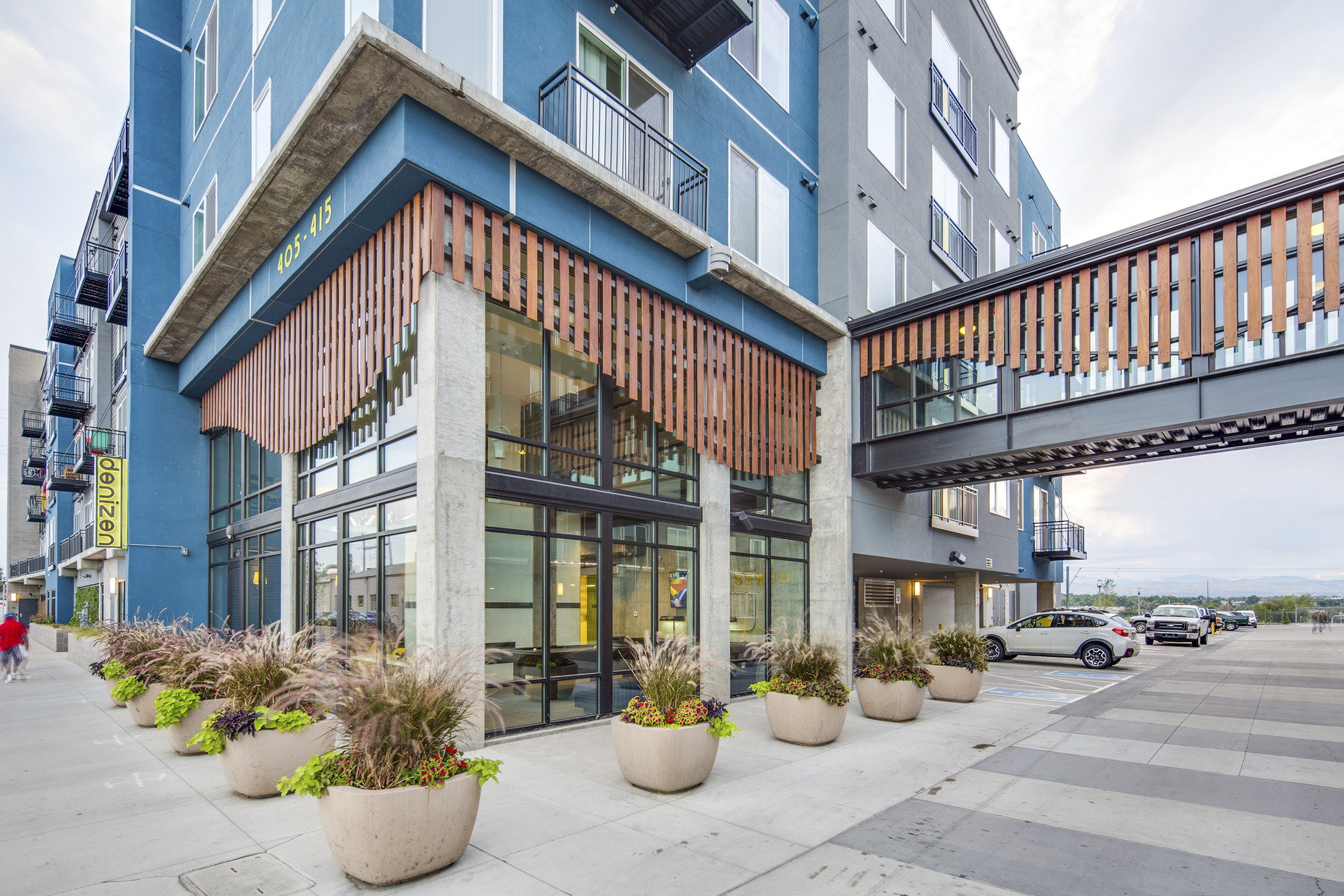Denizen satisfies the need for market-rate attainable housing in an affordability challenged market, along with a healthy and sustainable lifestyle. With all the special features, there is not another apartment community like it in Denver. The community is located 20 feet from the light rail platform providing convenience for residents. There is also car and bike sharing programs allowing multiple options for transportation. Furthermore residents grow their own food in the community garden and share extras with neighbors. The thoughtful incorporation of vibrant art, boutique retail, and public gathering spaces throughout the community has transformed this once park-n-ride lot into a lively destination. Denizen ultimately connected and activated the surrounding neighborhood.