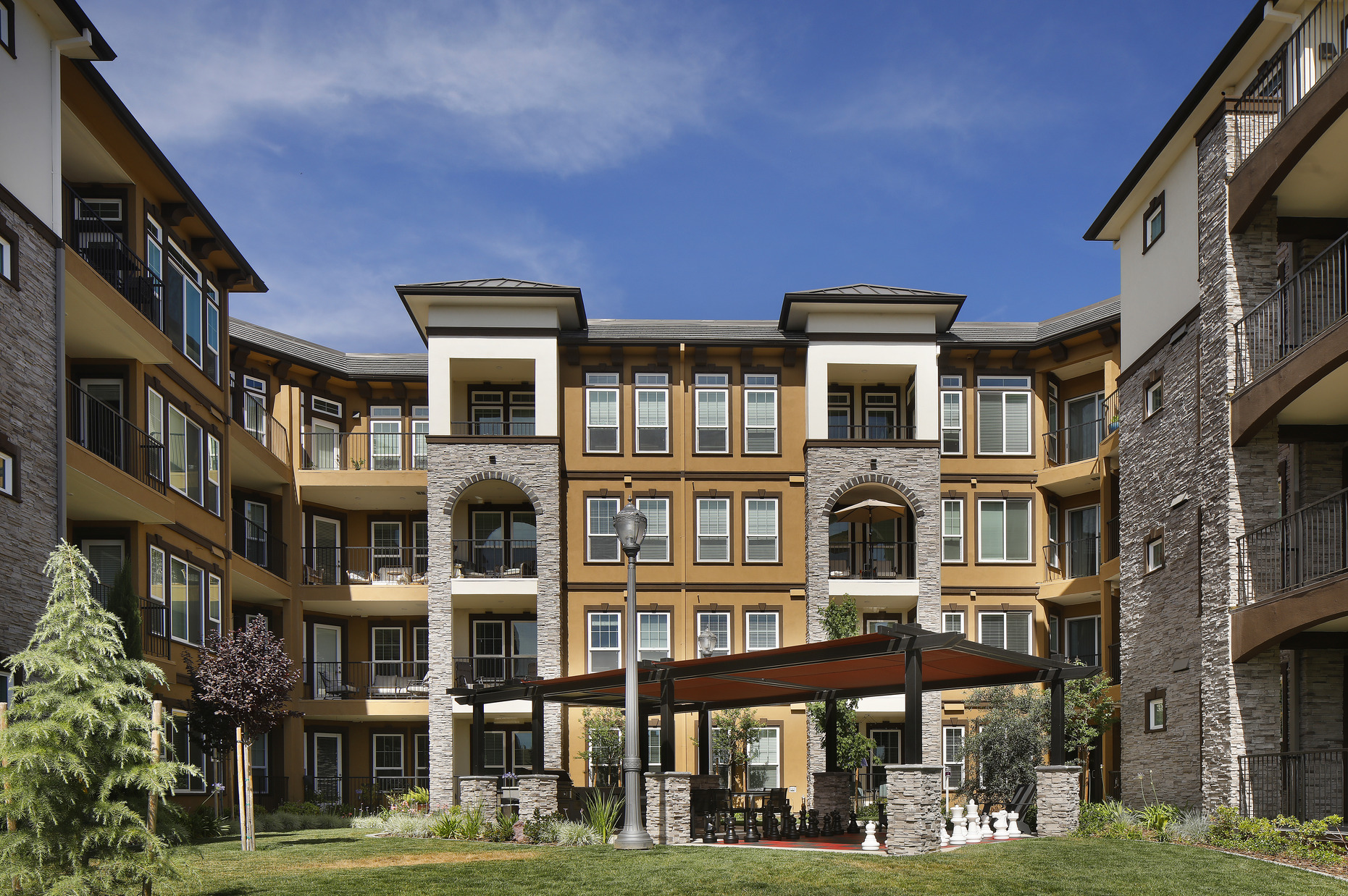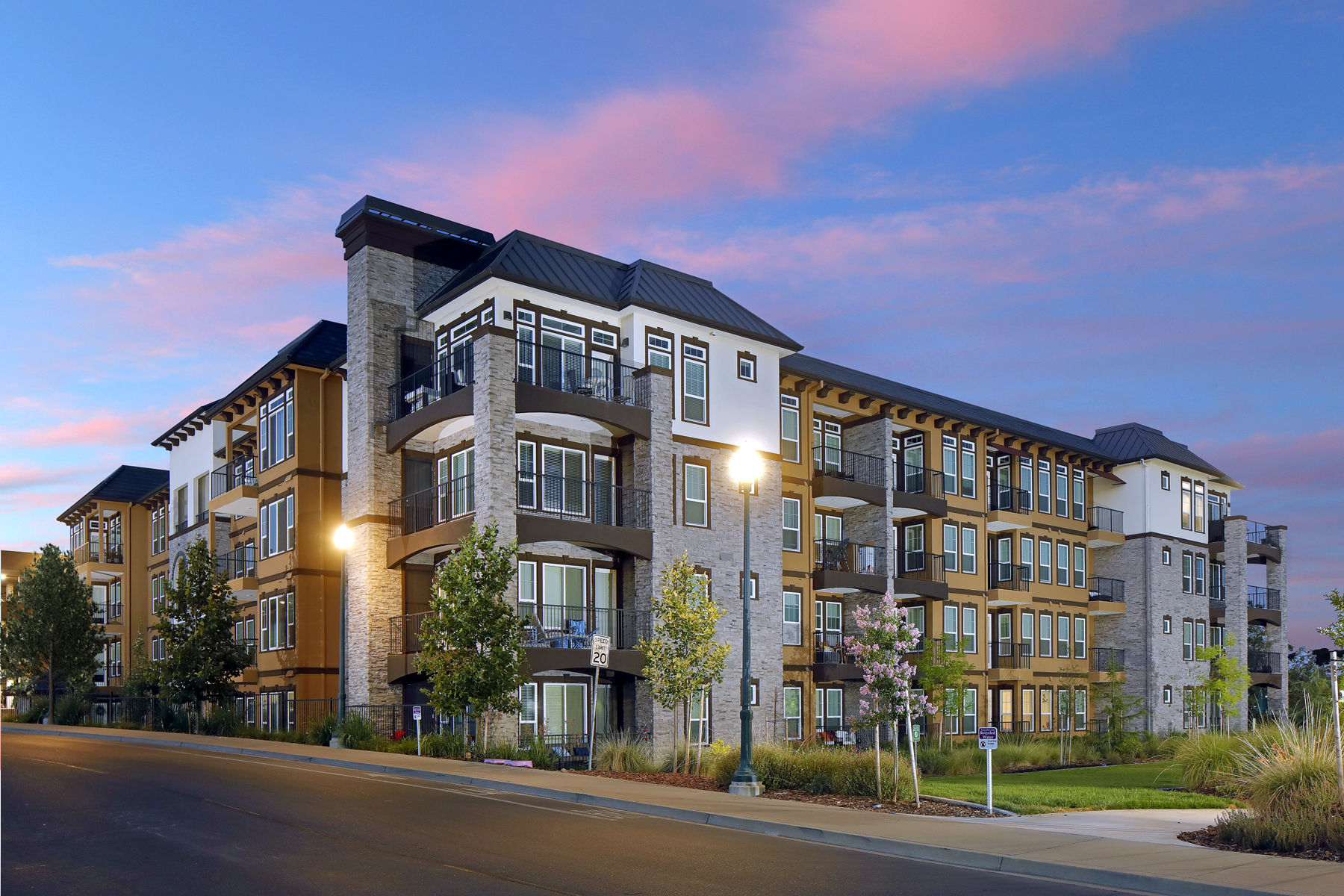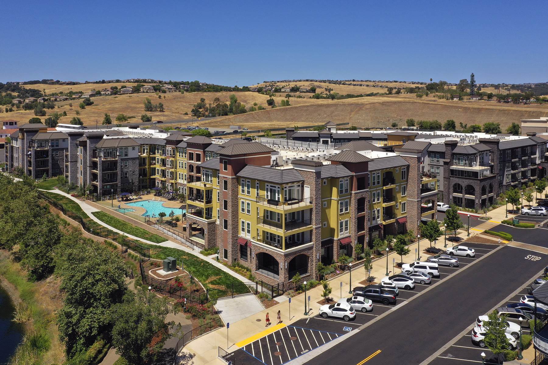 Located just outside of Sacramento, California, in the affluent suburb of El Dorado Hills, Element 79 is the missing piece that completes the Town Center master plan on multiple levels. It adds a missing residential component to the community by creating a thoughtful transition between the small-scale boutique retail to the East and big-box retail and office space to the West and creates a pedestrian-friendly experience along the main thoroughfare of the development.