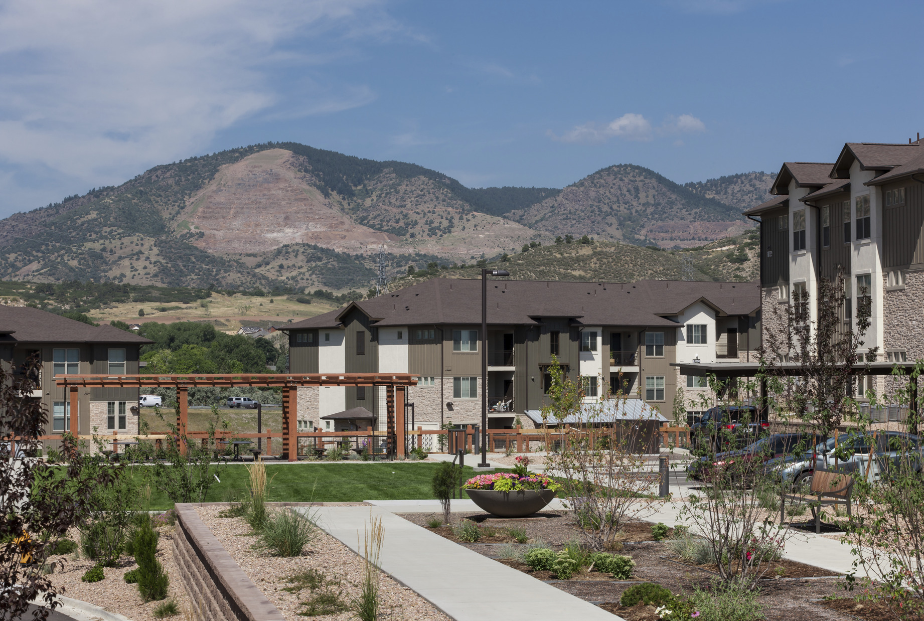 With stunning views of the Dakota Hogback and Front Range mountains, Ironwood at Red Rocks is the ideal community for those looking to take advantage of the Colorado lifestyle. Designed for active professionals and young families, the community offers a mix of 1, 2 and 3-bedroom floor plans finished with modern features. With luxury amenities including a fitness center, a large pool and spa, BBQ area, dog park, and a bike shop, it’s easy to relax and soak in the mountain views.
