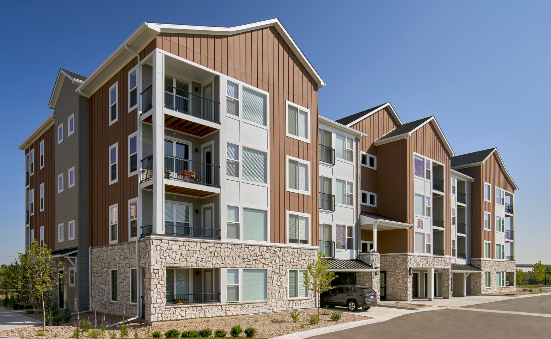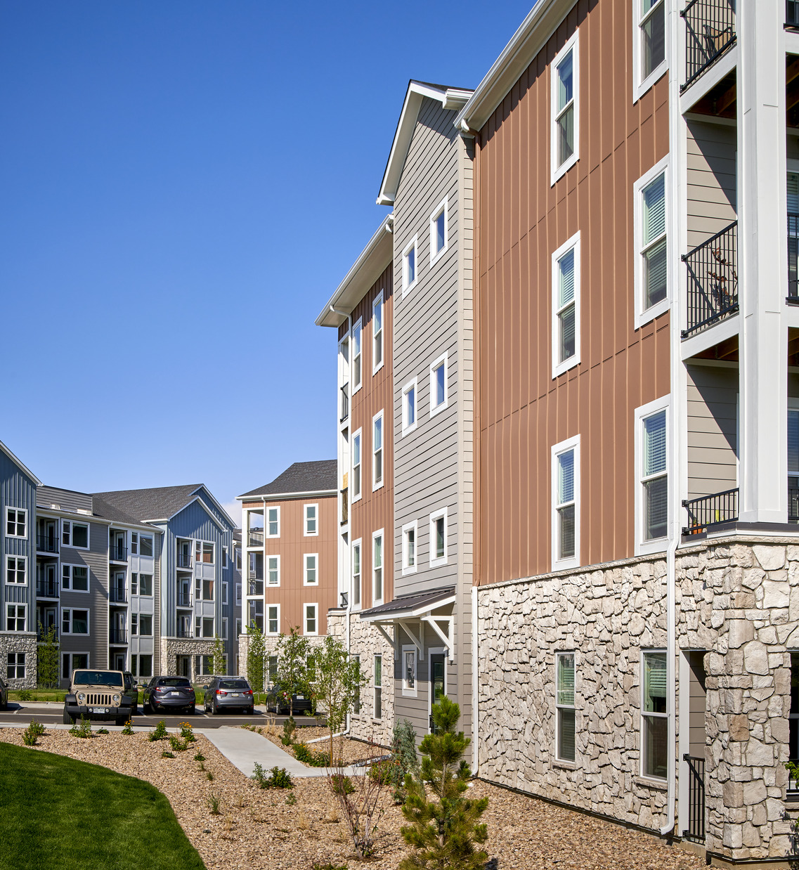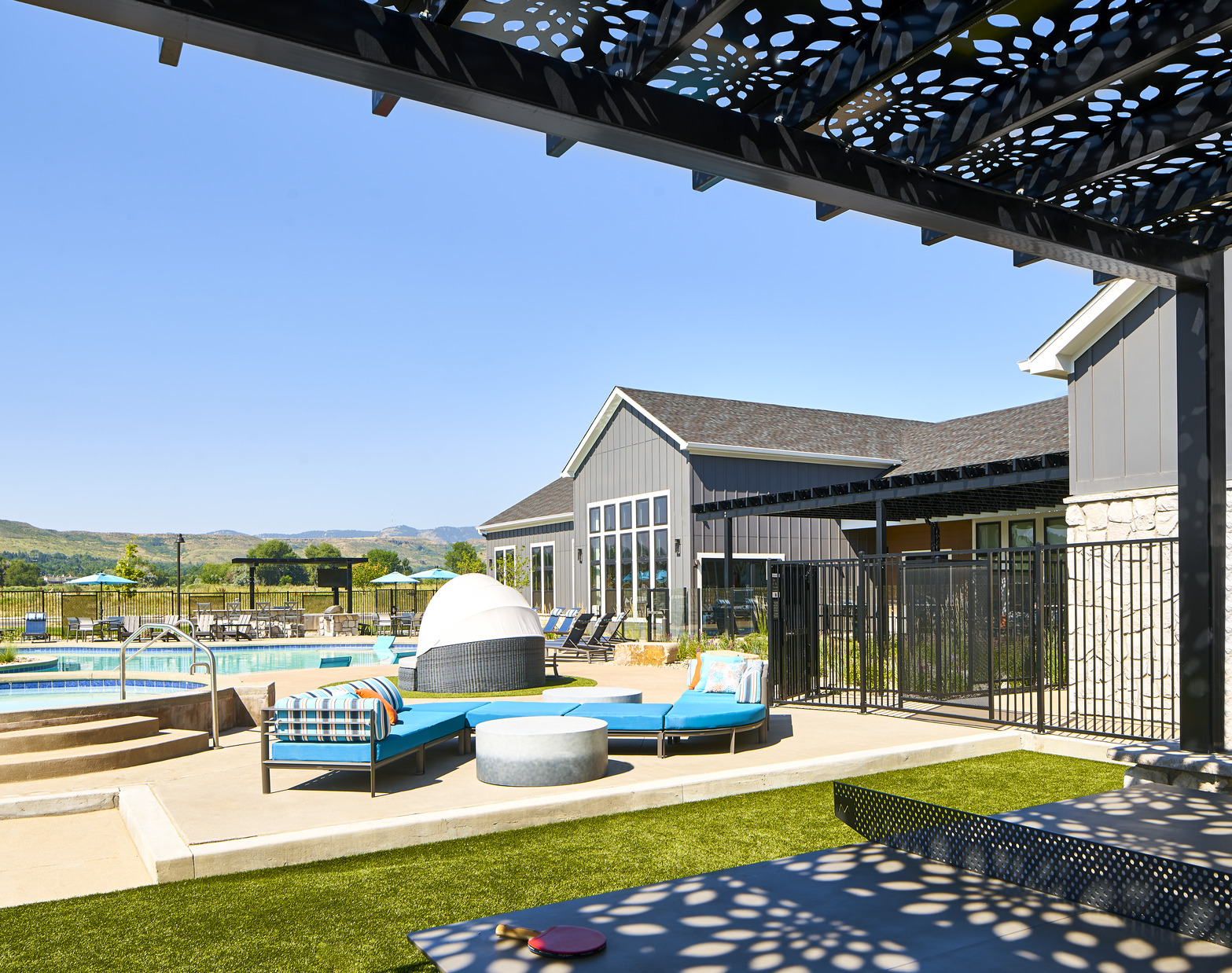 The one and two-bedroom units are spacious and well laid-out with large kitchens and big windows to allow for plenty of natural light and mountain views. The community is also packed with luxury amenities including a resort-like pool and spa with surrounding fire pits, game areas and outdoor grills, and a clubhouse with a large fitness center, a woof wash and business center.
