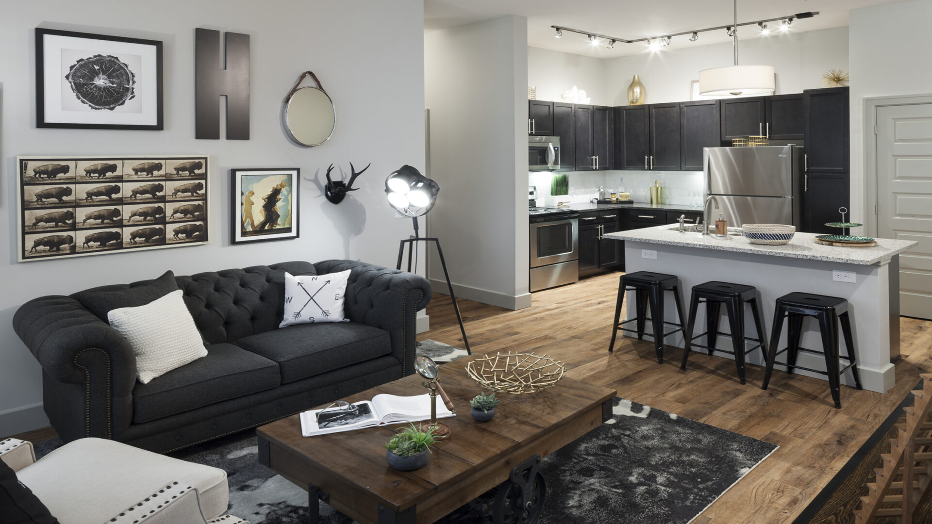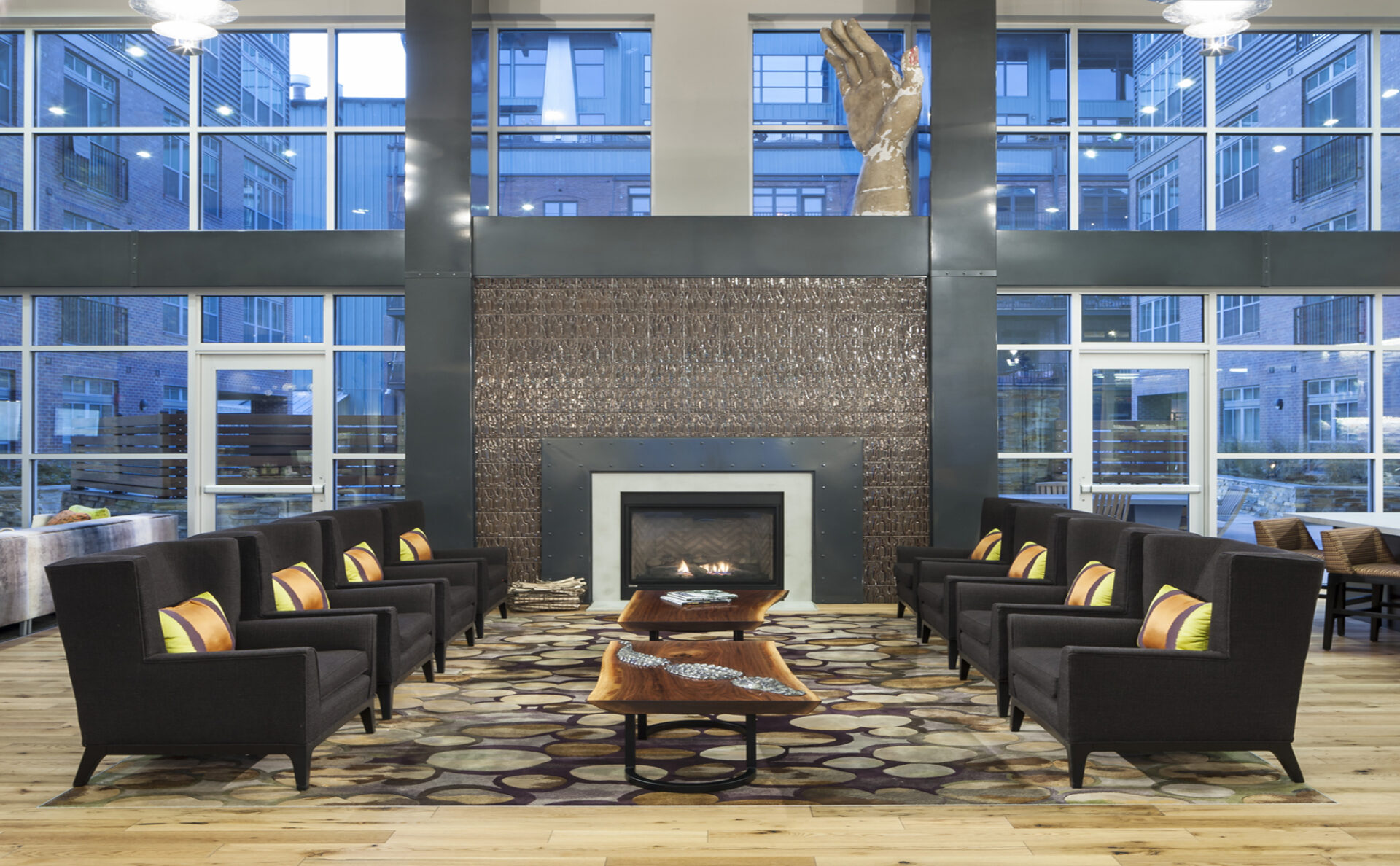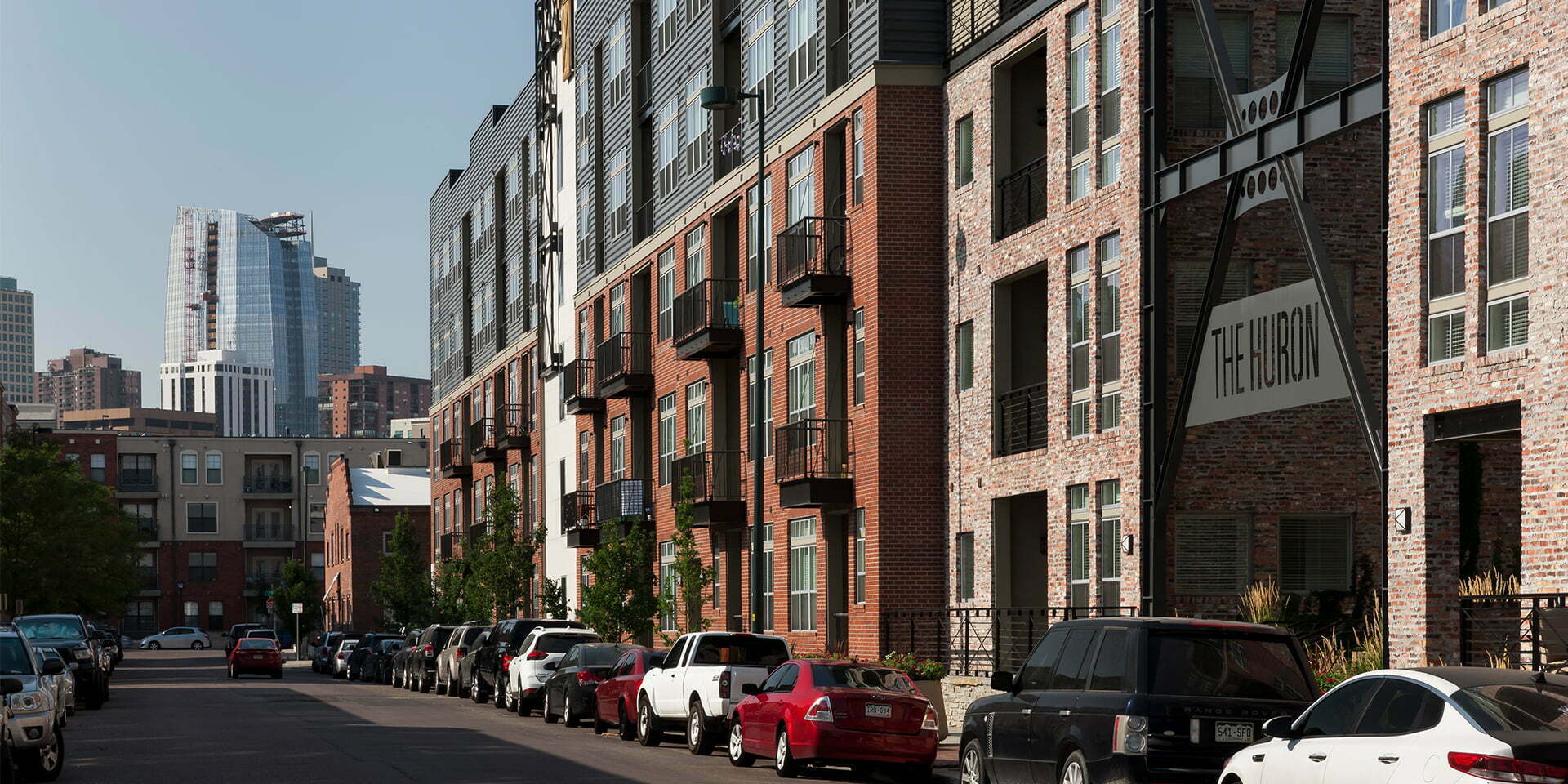 The Huron is a luxury, infill apartment community on the edge of downtown Denver and near Coors Field. Situated in an industrial area, this area once serviced the railroad. As a result, the architecture pays homage to the rich history of the neighborhood with an industrial, modern style. Outdoor courtyards on two levels with plantings inspired by the landscape of the nearby Rocky Mountain foothills give residents easy access to nature in the city. Furthermore, the community has a lot of amenities. A lounge with a tech bar, billiards room, bark park, fitness room, and pool are just a few of the amenities.