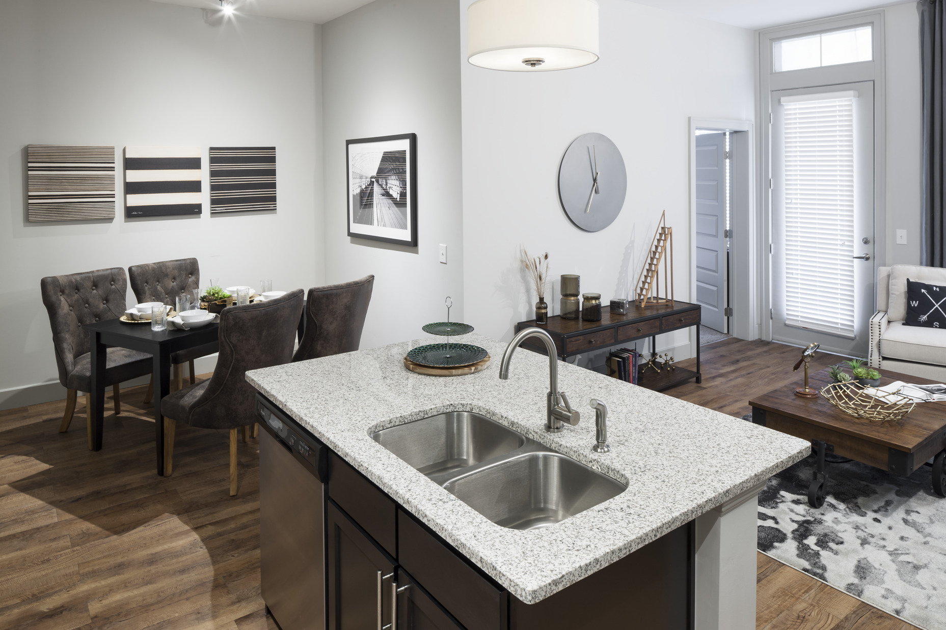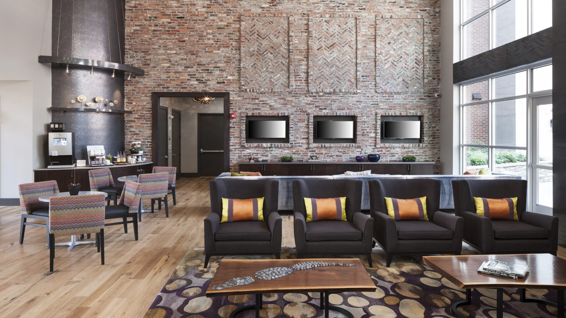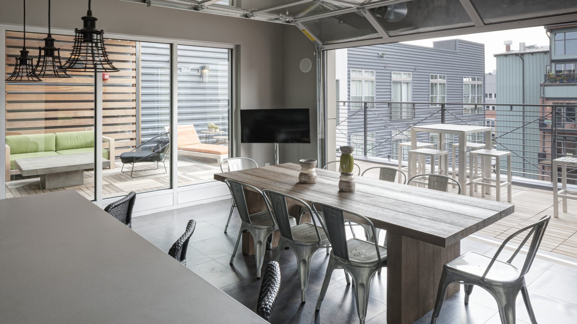 The Huron is a luxury, infill apartment community on the edge of downtown Denver and near Coors Field. Situated in an industrial area, this area once serviced the railroad. As a result, the architecture pays homage to the rich history of the neighborhood with an industrial, modern style. Outdoor courtyards on two levels with plantings inspired by the landscape of the nearby Rocky Mountain foothills give residents easy access to nature in the city. Furthermore, the community has a lot of amenities. A lounge with a tech bar, billiards room, bark park, fitness room, and pool are just a few of the amenities.