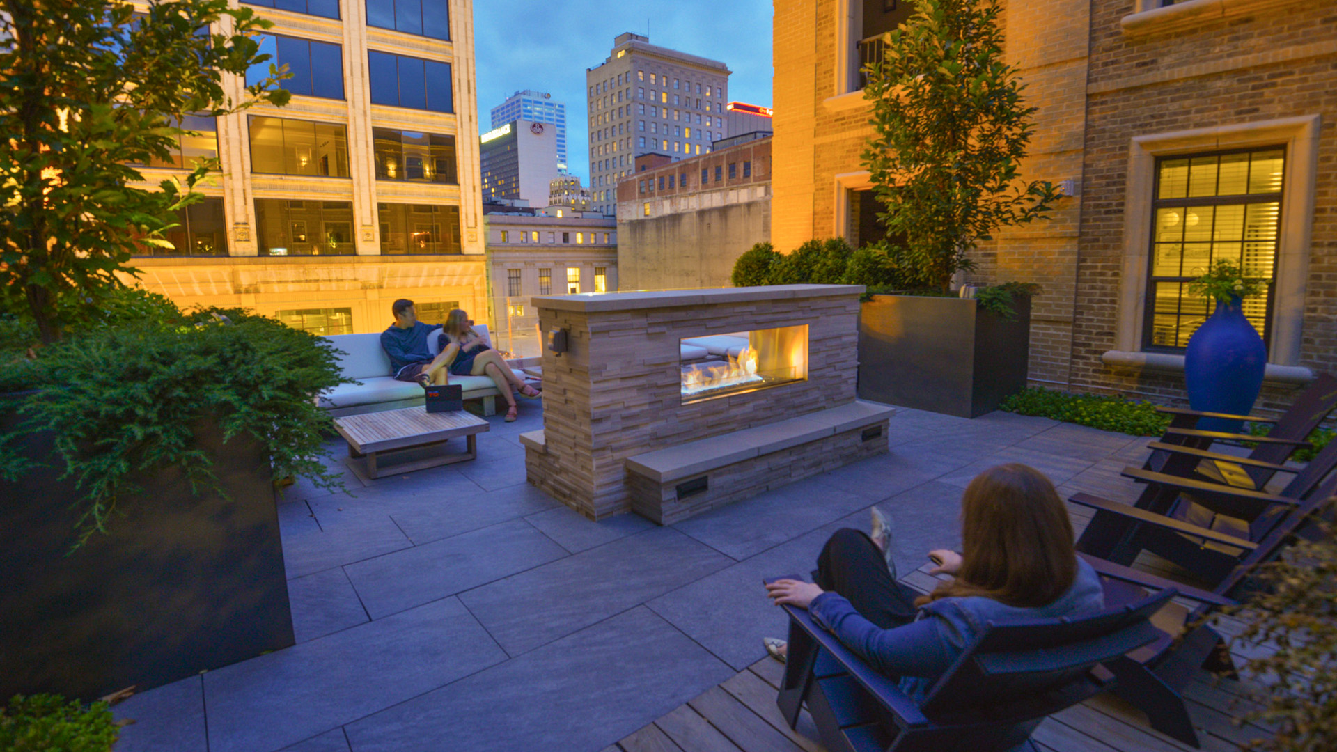 To keep the large scale of the development, which encompasses half a city block, from overwhelming its surroundings, the building was thoughtfully designed to give the illusion that it was developed organically in multiple phases over time. Three distinct architectural styles were used, in addition to a variety of heights and strategically placed outdoor courtyards to break up the massing of the building. Each unique architectural style – from Contemporary to Romanesque Revival and Modern – pays homage to the historic fabric of downtown Columbus, while fresh details, like the cantilevered pool in the middle of the block add an exciting, new character to the area. On the ground floor, over 21,000 sf of boutique retail and restaurant space further activates the street.